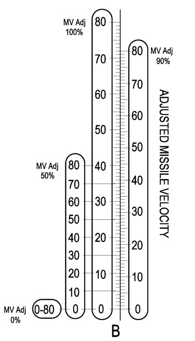 It calculates CV * CV_ADJ = ACV. But notice CV_ADJ. It only has seven values. Remember the family of scales above? We could replace the single Adjusted Closing Velocity scale with a set of seven scales. One scale would be CV * CV_ADJ where CV_ADJ=0, the next where CV_ADJ=1, and so on.