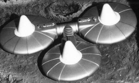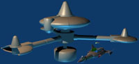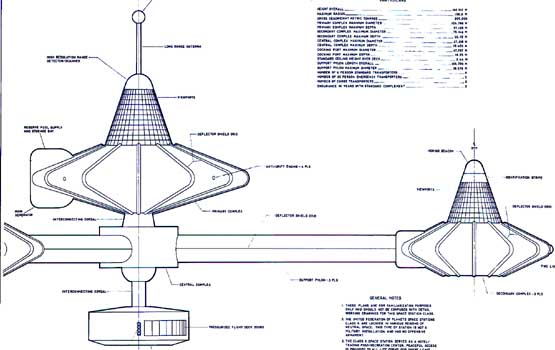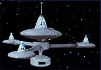 The galactic cruiser Leif Ericson of the Strategic Space Command needs some kind of base to operate from. Matt Jeffries created the Leif, and lucky for us, he also created the K-7 space station from the Star Trek episode "The Trouble with Tribbles." (which was re-created for the ST:DS9 episode Trials and Tribble-ations). The station was based on a then cutting-edge design by the Douglas Aircraft Company.