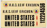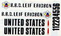 As far as fonts go, the words "Leif Ericson" are in a font named Juniper, the words "Galactic Cruiser" are in a font named Peignottm Bold, and the decals are in a font named Ameliatm.