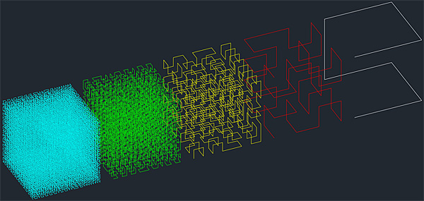 James Huff is experimenting with plotting something similar to a Longscan display. He is trying to make a "probability plot" of where to aim your guns, given the target's acceleration, maneuvers, and lightspeed lag due to the range to the target. Mr. Huff generated these plots with a custom C++ program he wrote for generating iterated function systems.