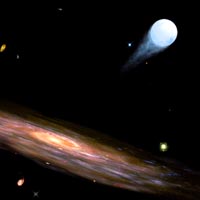 Anyway, Lowell noticed that the orbits of Uranus and Neptune were still not quite as predicted. Aha! It must be an undiscovered planet! Lowell started feverishly searching for "Planet X." Lowell died without finding anything, but the job was handed to a 22 year old astronomer-farmboy named Clyde Tombaugh. He discovered Pluto in 1930, but disappointingly Pluto was not Planet X. It had nowhere near enough mass. Later it was discovered that the discrepancies in the orbits of Uranus and Neptune were because astronomers had over-estimated the mass of Neptune. Planet X was a myth.