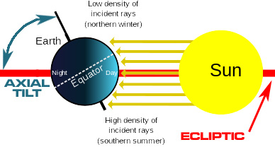 The axis of Uller is in the same plane as the orbit, so that at a certain time of the year the north pole is pointed directly at the sun, while at the opposite end of the orbit it points directly away. The result is highly exaggerated seasons. At the poles the temperature runs from 120°C to a low of -80°C. At the equator it remains not far from 10°C all year round. Strong winds blow during the summer and winter, from the hot to the cold pole; few winds during the spring and fall. The appearance of the poles varies during the year from baked deserts to glaciers covered with solid CO2. Free water exists in the equatorial regions all year round.