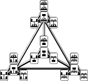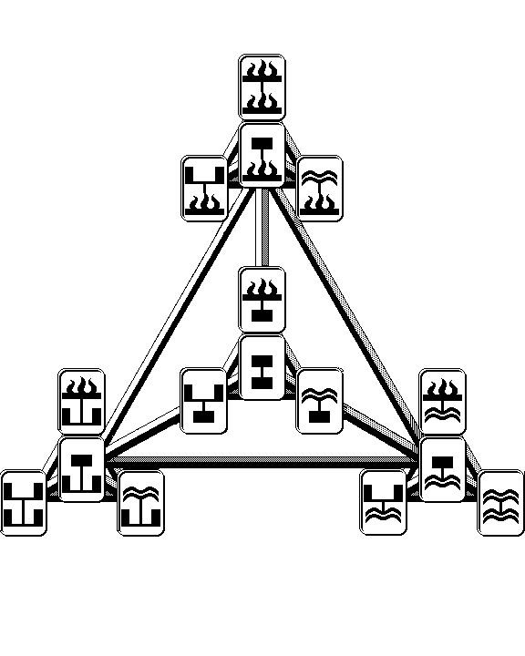 The diagram TETSPRED.GIF is meant to be printed out, and used to lay out rune tiles, geomantic symbols, or whatever on it. The cryptic symbols are Pentateuch symbols. The design is the framework of a synergetic pantacle.